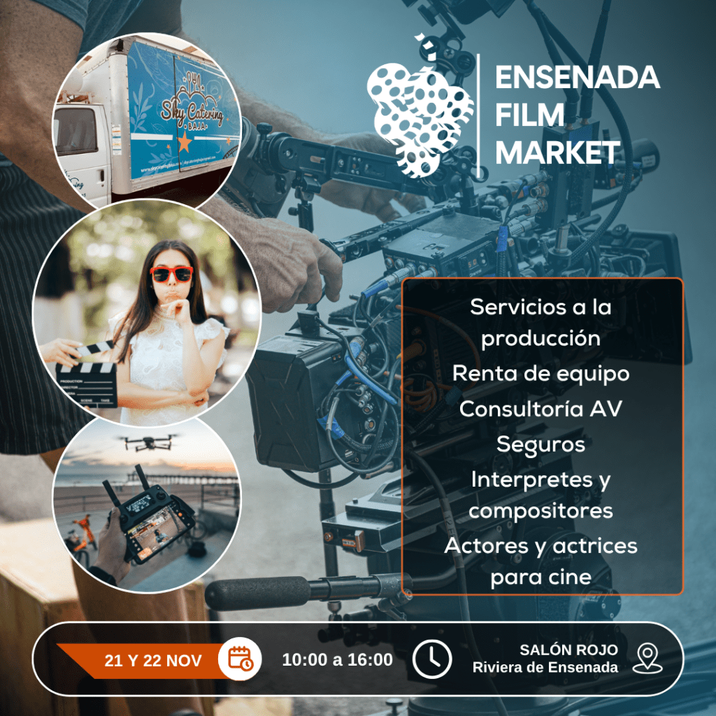 Únete a este exclusivo encuentro de la industria audiovisual los días viernes 21 y sábado 22 de noviembre, de 10:00 a 16:00 horas, en el Salón Rojo del Centro Social, Cívico y Cultural Riviera de Ensenada.